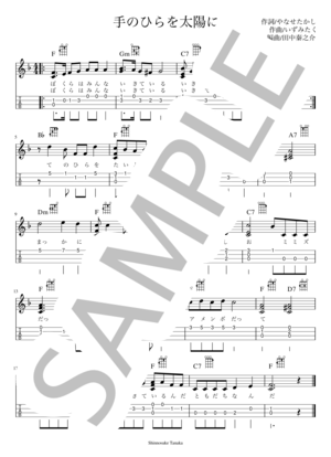 楽譜 参考 解説動画 手のひらを太陽に 田中秦之介 いずみ たく ウクレレソロ 入門 初級 Piascore 楽譜ストア