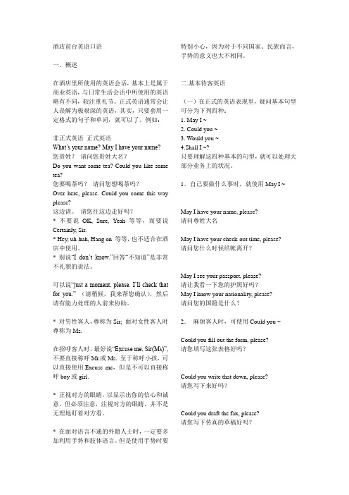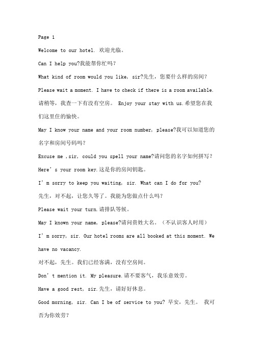 酒店前厅英语 百度文库