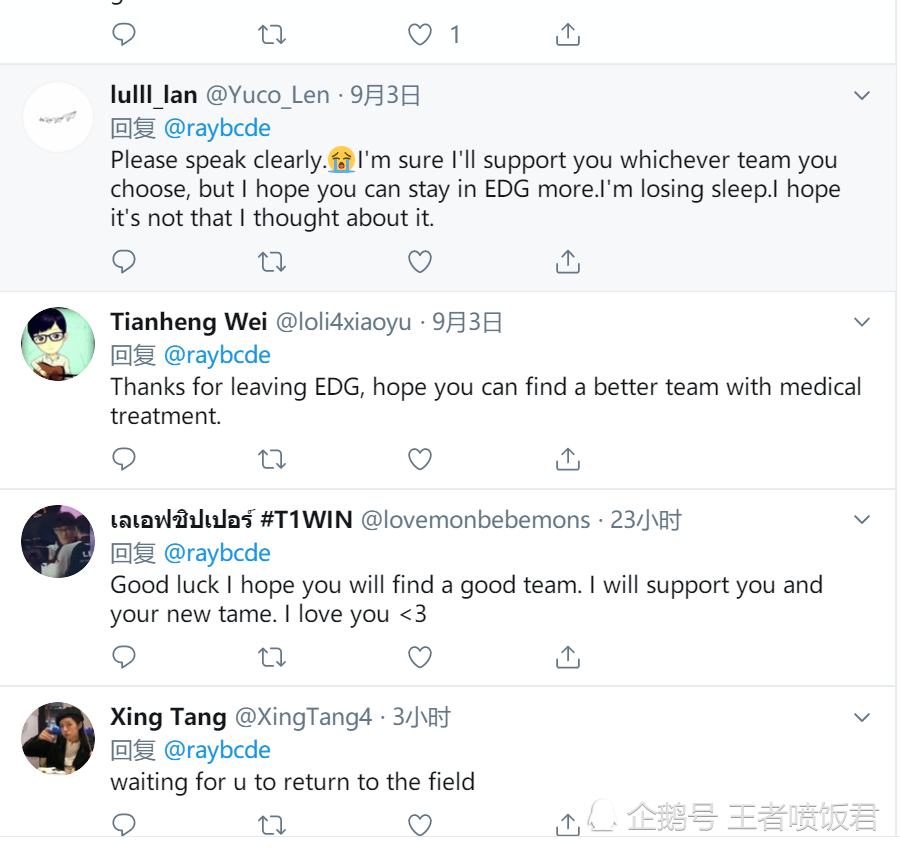 Edg有大变动 Ray发推寻新东家 网友 买theshy